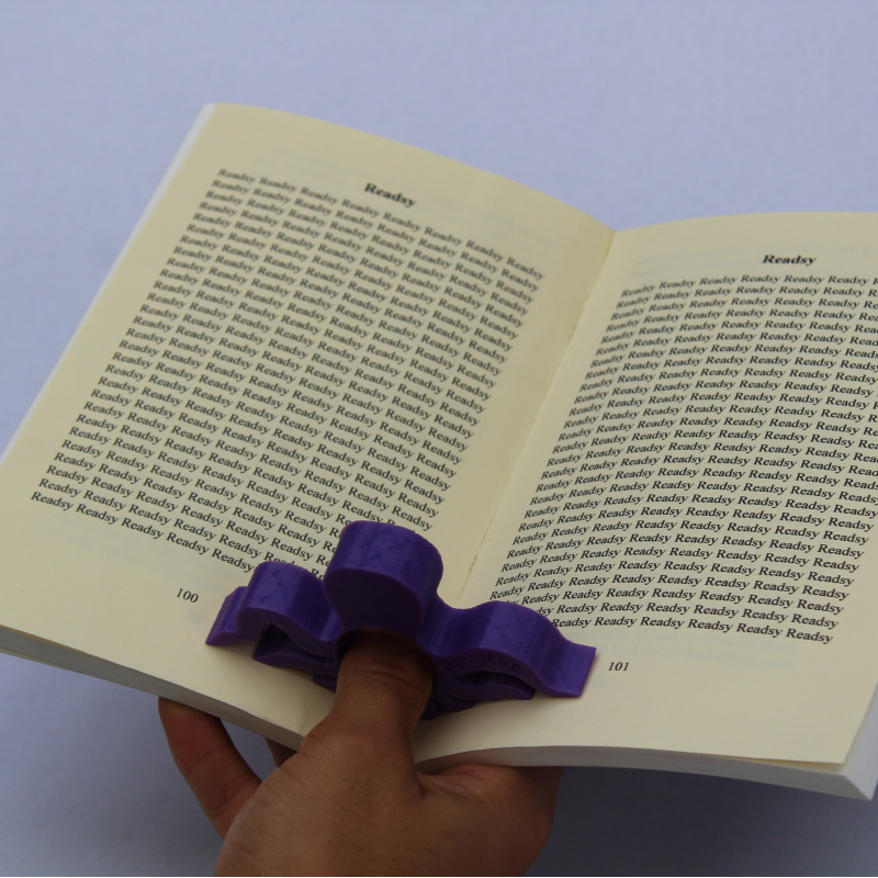 Het eenvoudige ontwerp wijst zichzelf uit. Plaats de tool in het midden van je boek, onderaan de pagina en steek je duim door de opening. Geniet van het lees-comfort.