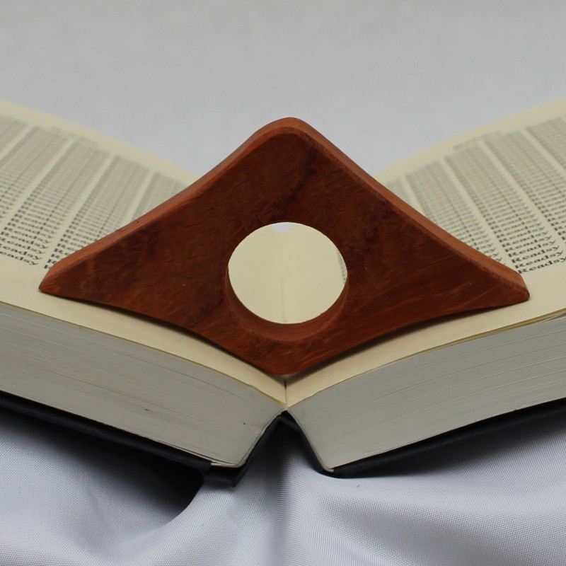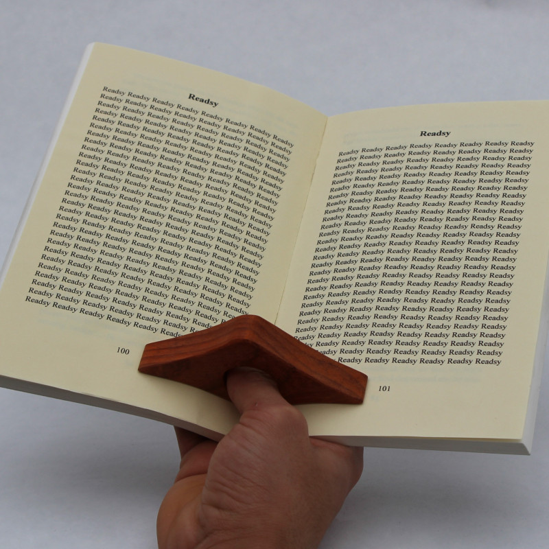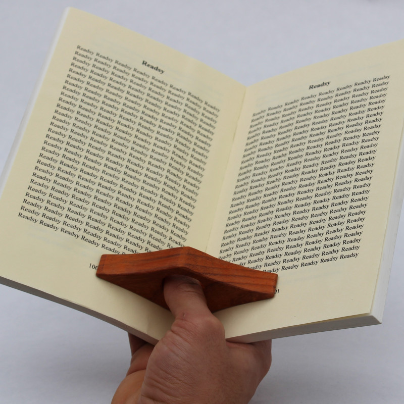 Nieuw gadget Eén hand vrij Leesmotivatie Liggend lezen Buiten lezen Geen handkrampen Voor jong én oud Universeel ontwerp Uniek cadeau Compact Lokaal bedrijf Handwerk Elk stuk is uniek Duurzaam hardhout Padouk hout
